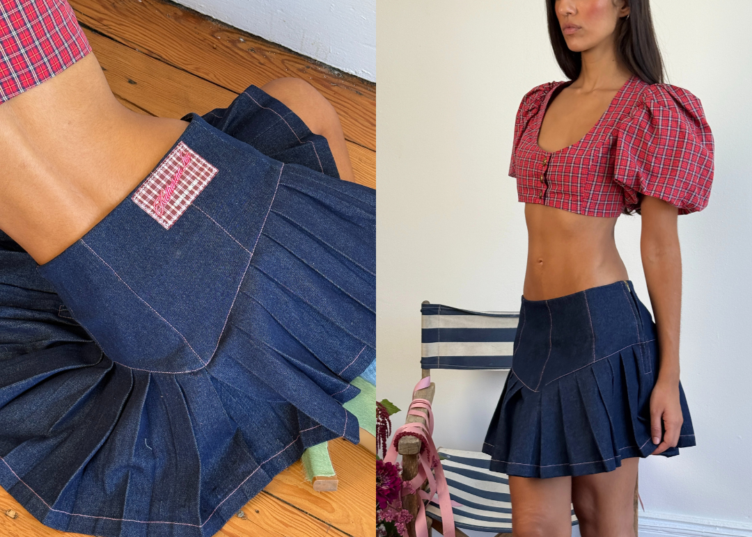 ♡ Vintage inspired pleating detail; flowing into a flouncy mini skirt.