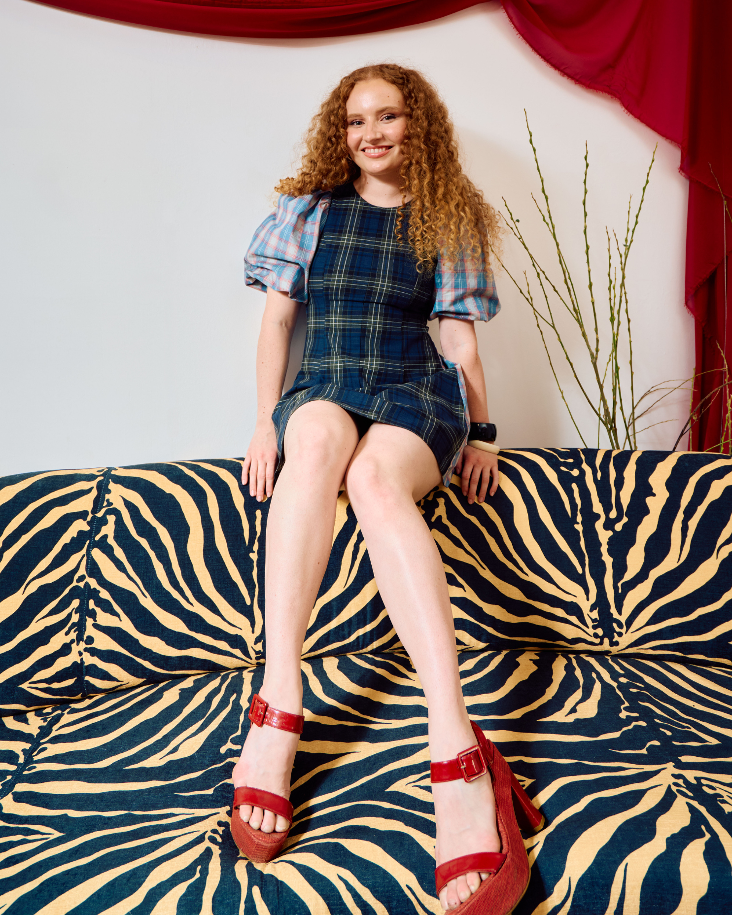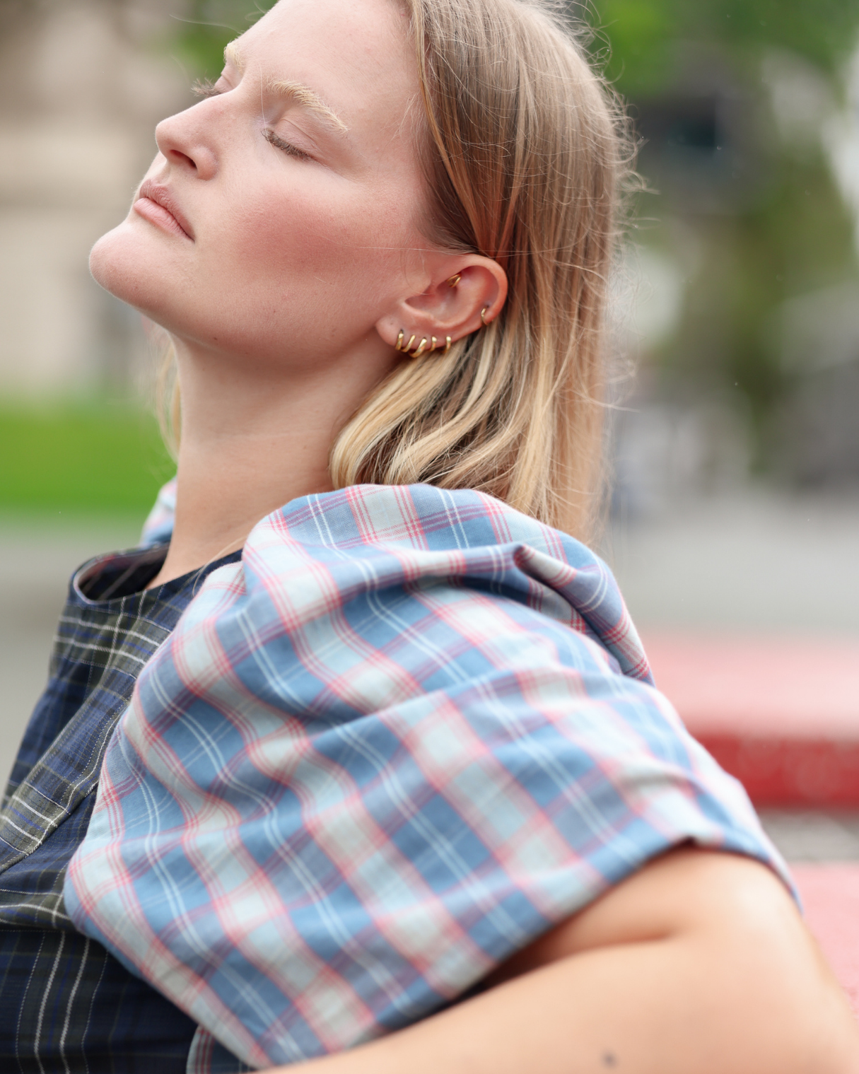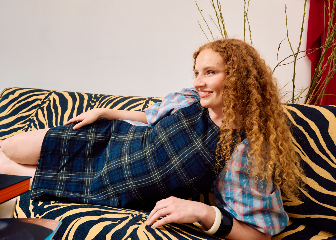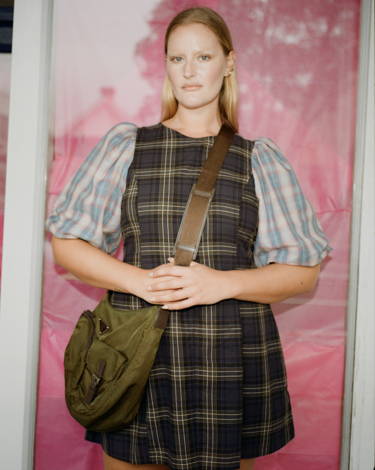 New & improved. We've developed the fabulous statement sleeves to have the perfect amount of volume. Paired with a figure-hugging body makes this iconic silhouette a crowd favourite once again. Made in our much loved, pastel blue & baby pink plaid fabric. Contrasted with a deep navy X green plaid - You're very welcome.
