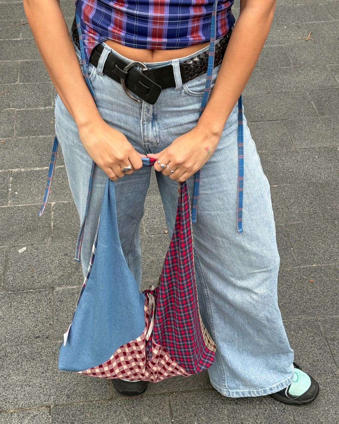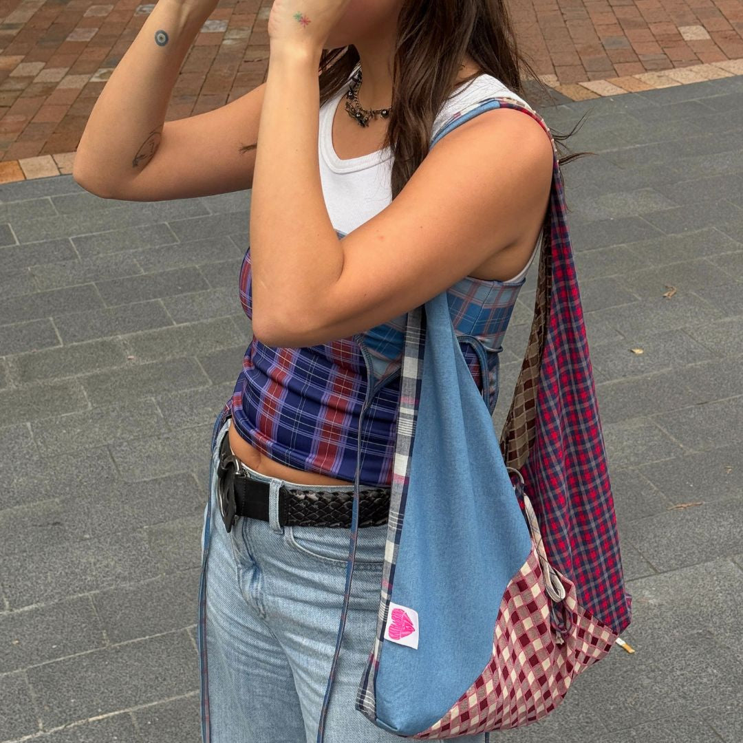 Made from a variety of fabric off-cuts, that we are utilising to embrace our plaid X colour X clash roots. Crafted with love, in Sydney AU.