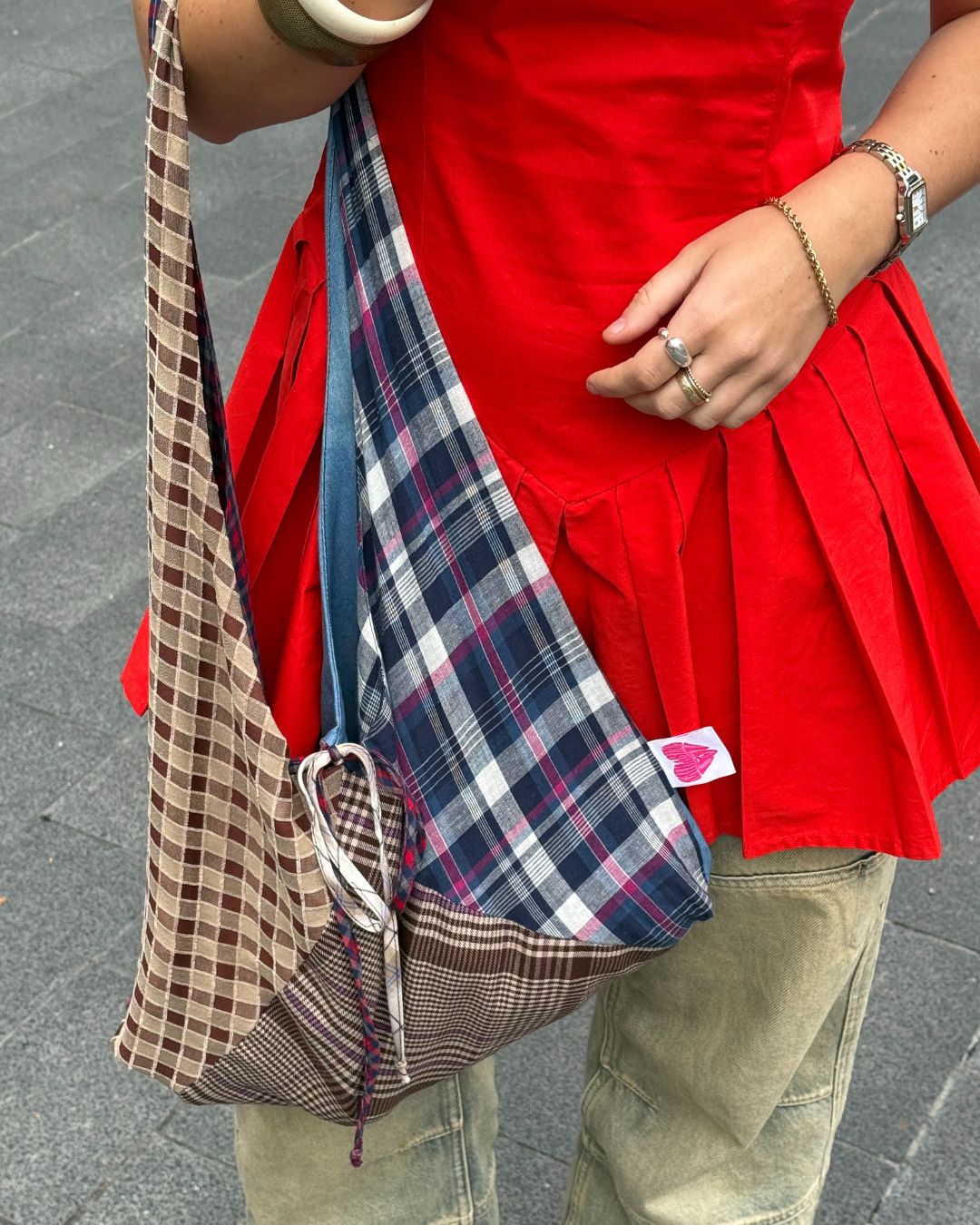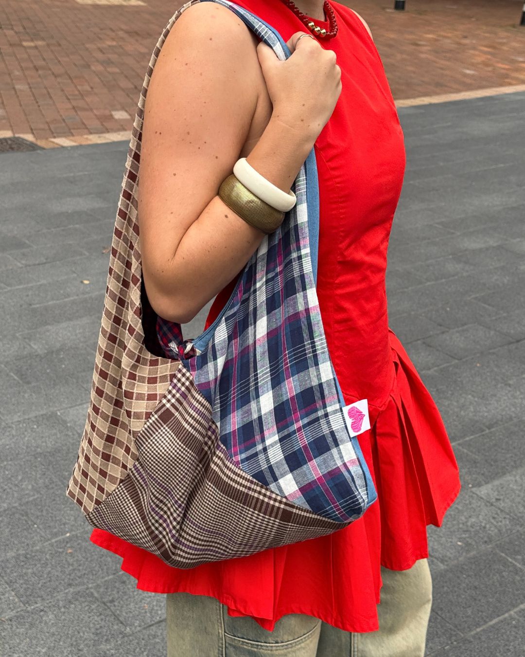 Meet our new Off Cuts Shoulder Bag, inspired by the Japanese Origami bag, crafted from a range of plaids in true KLOU fashion -  featuring some never seen before sampling fabrics.