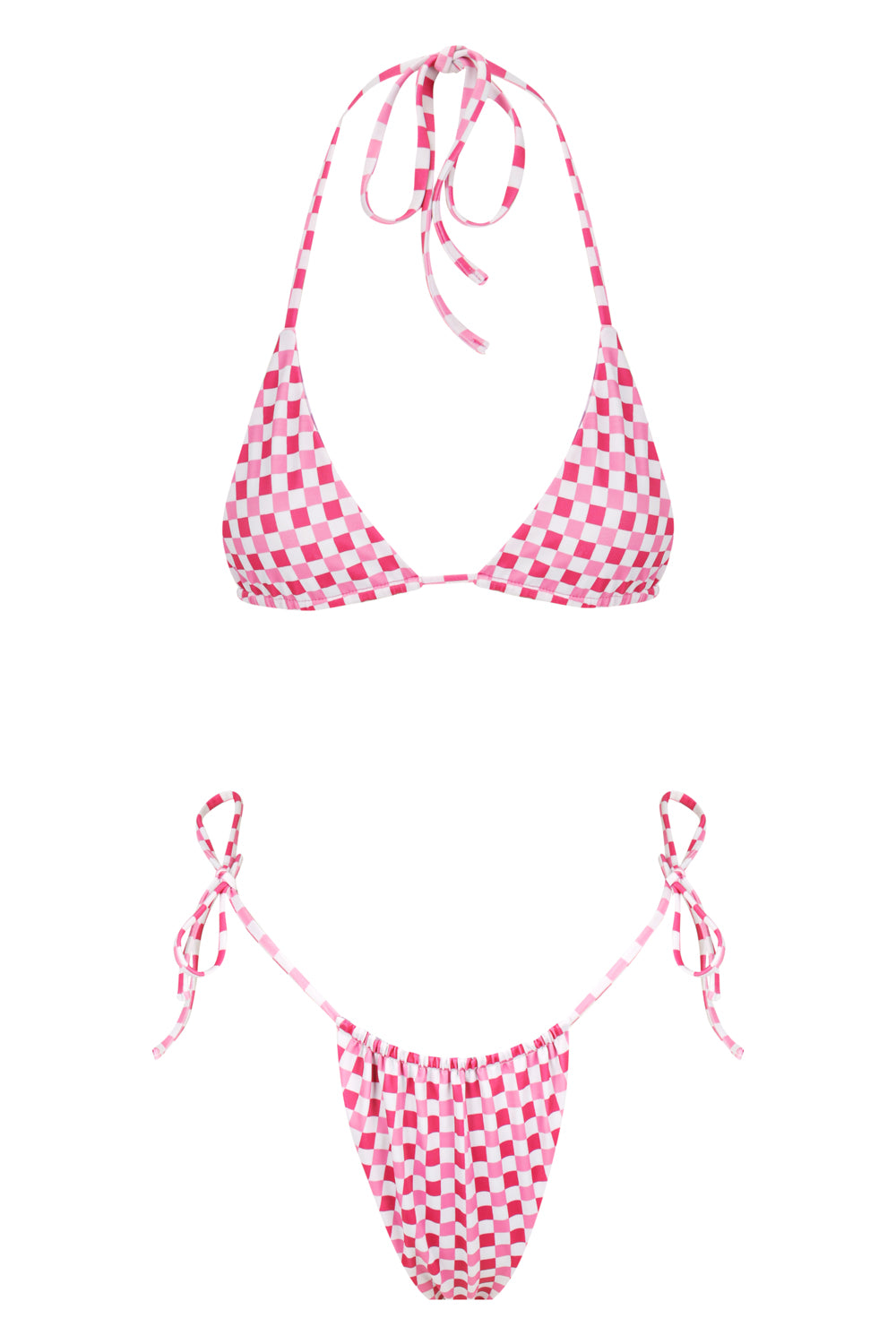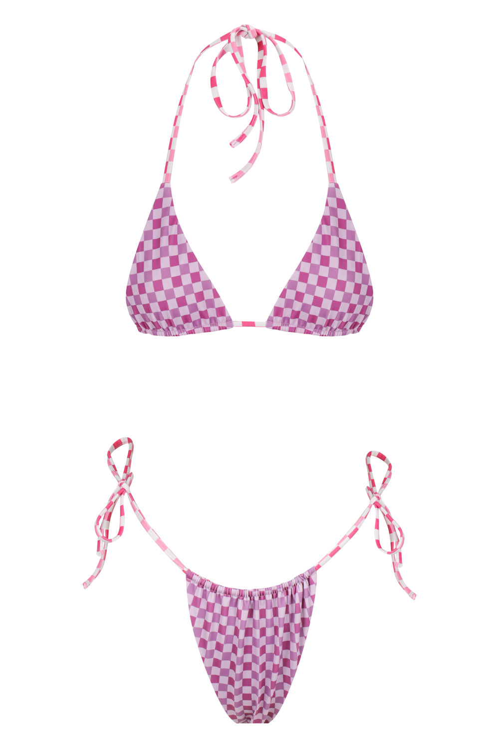 ♡ Reversible style; one side featuring our pink check and other side featuring our purple check print.