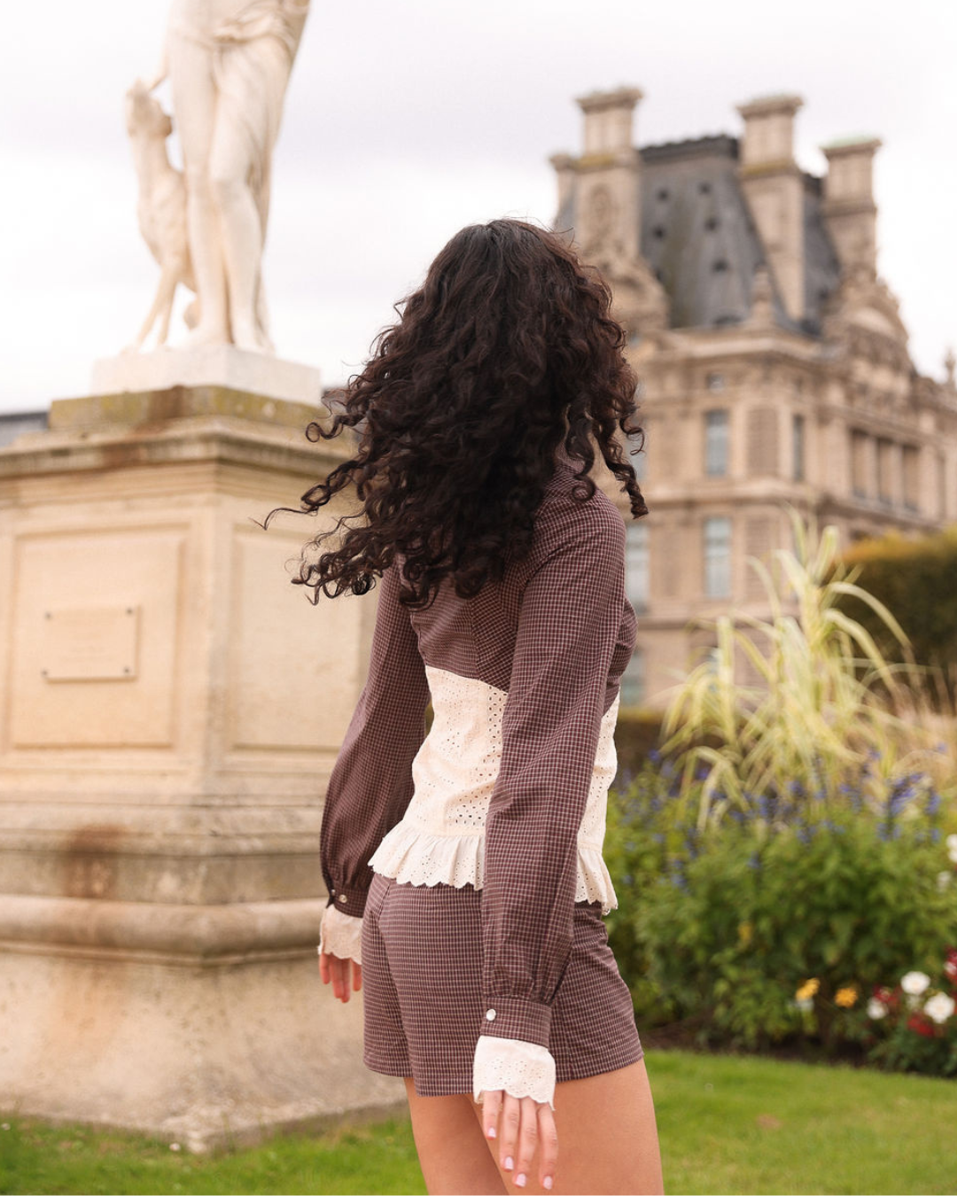 The Cowgirl Mini Shorts, the perfect match to the Cowgirl Blouse. In the same beloved burgundy check 100% cotton as our Jillian Set - styling options for days. Made to be worn on the go, for our girls who prefer the functionality of shorts instead of skirts. With of course, a comfortable mid-rise fit (non-negotiable, duh).
