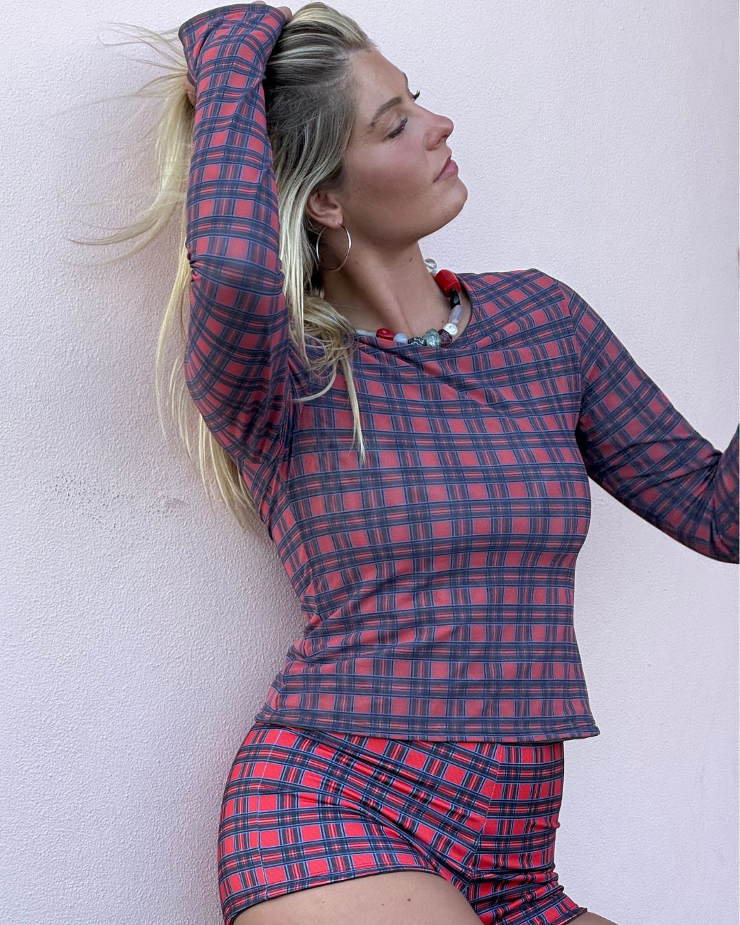 Introducing our Mesh Long Sleeve in Red Tartan - perfect for adding a pop of colour to those dreary winter days. And, in true 2-in-1 fashion, it's reversible too, with a fun chocolate brown treat on the other side.