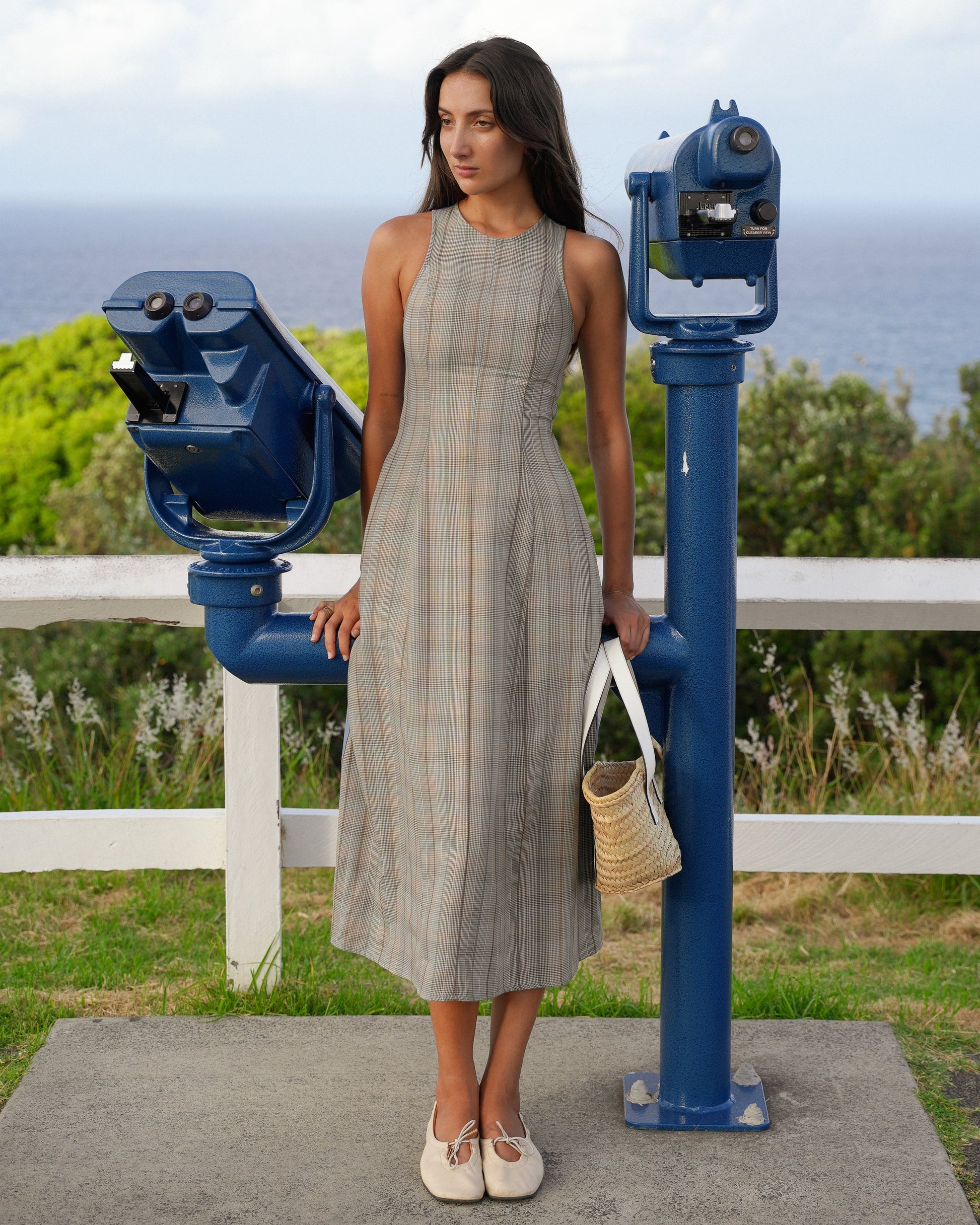 She's back. The bestseller that makes everyone look like a total smokeshow -  our viral Ollyrose midi dress in Houndstooth & slate blue.