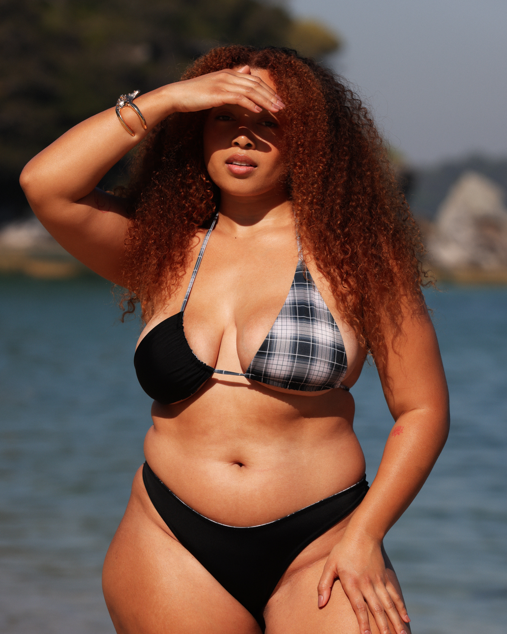 She's a staple, classy black triangle bikini top that could never fail you. Flip her around and you've got our statement midnight plaid (more plaid the better obvs). There's many styling options – as seen on Bailey half reversed but double the fun.